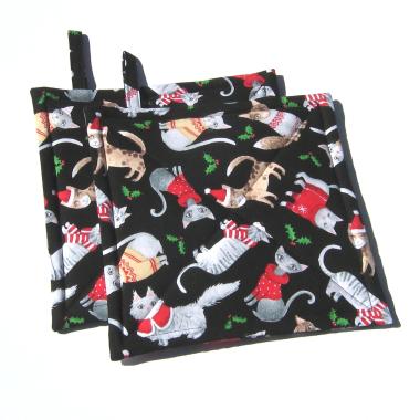 Pink Christmas Potholders, Retro Mini Santa Quilted Hot Pads, USA Handmade Stocking Stuffer, Hostess Bringsel, Wrapped for Gift Giving
