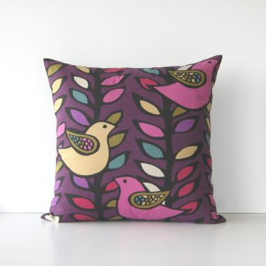 Jacobean Embroidery Pillow Cover in Rust Red Crinkle Home Décor Cotton Blend, 17 x 17 inches