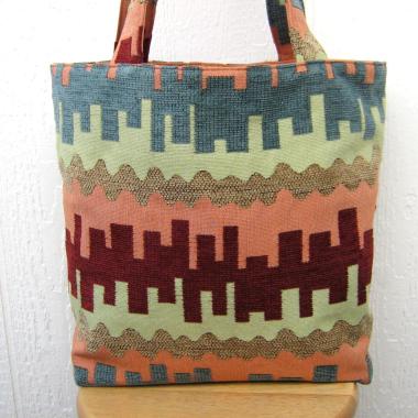 Dinosaur Tote, Funky Lined Bag with Inside Pocket, Perfect for Groceries, Books and Travel, Green, Teal & Taupe Cotton Bag, Handcrafted in New Mexico