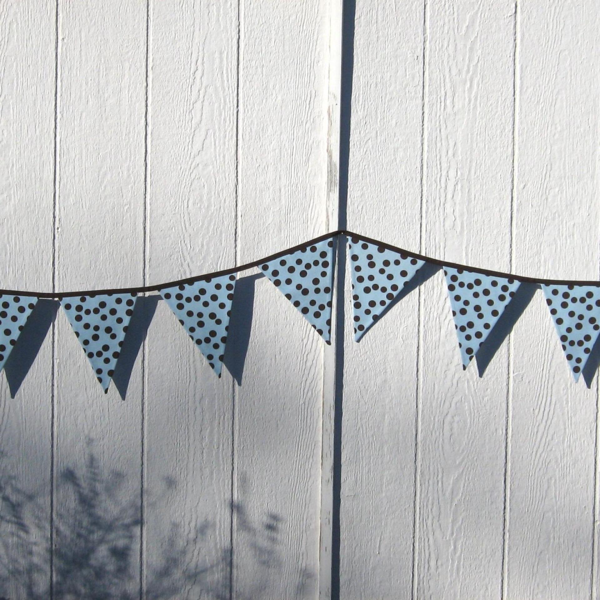 Flags are all-cotton premium quality fabric in a wonderful shade of light sky blue with dark brown random polka dots. An inner liner of interfacing gives body and stability to this lightweight cotton. Totally reversible, with same fabric front and back.