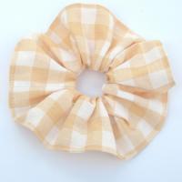 Gingham Check Linen Scrunchie, Choose from Apple Green or Pale Peach Linen Gingham Hair Accessory