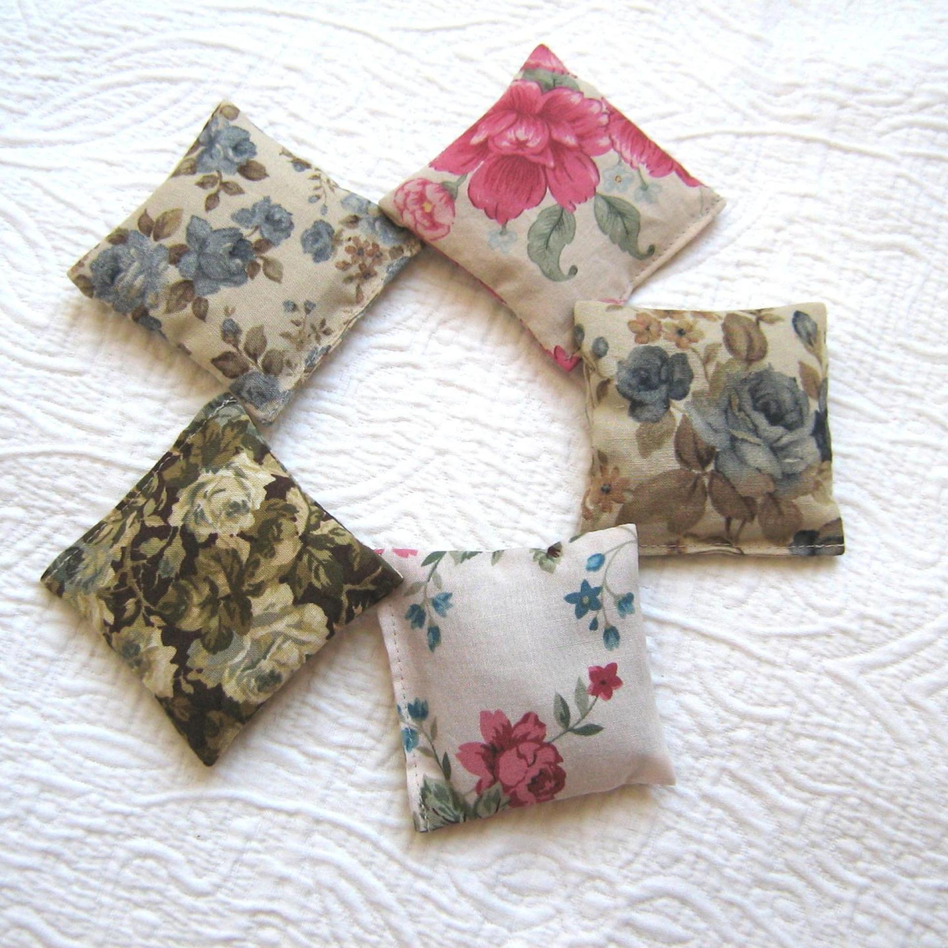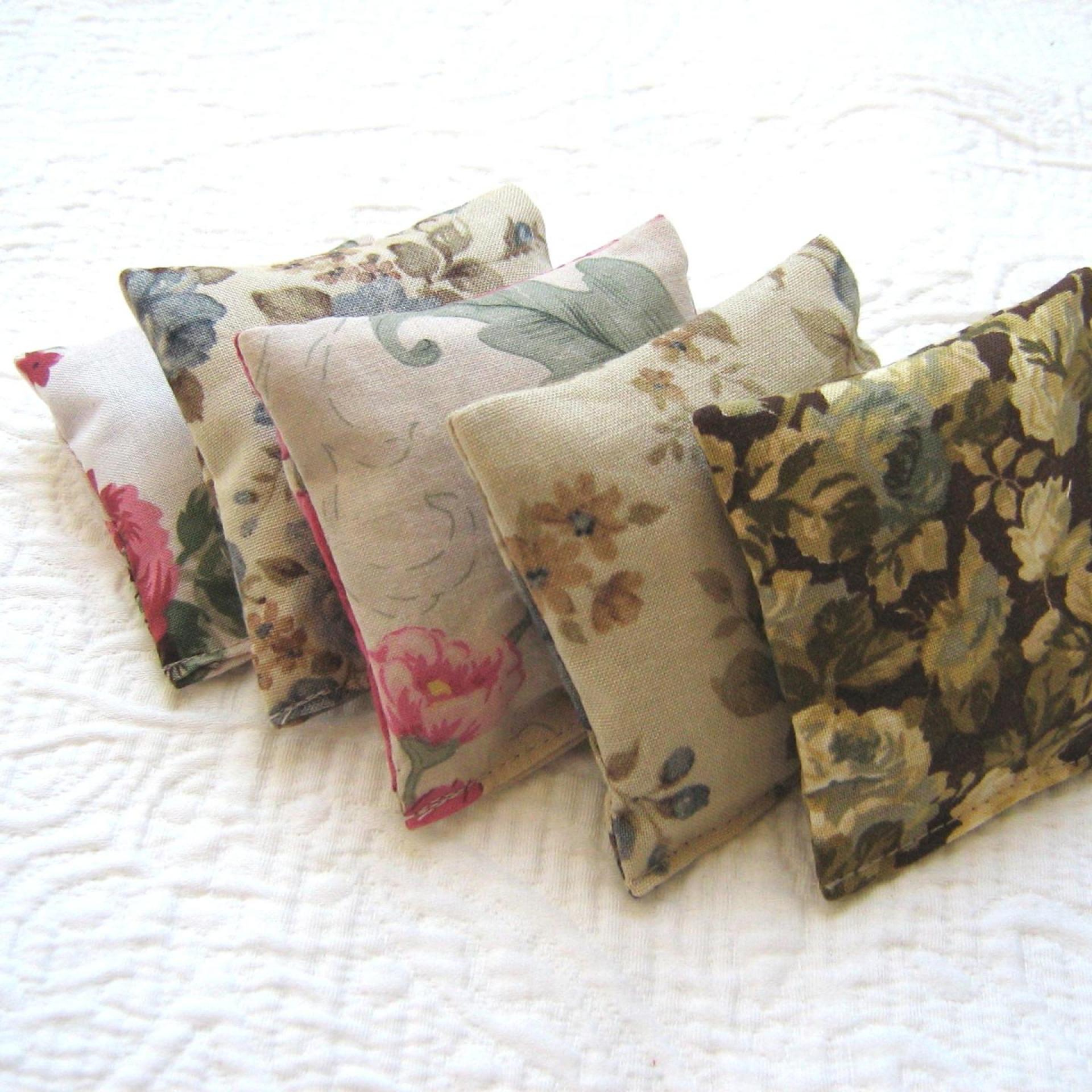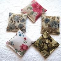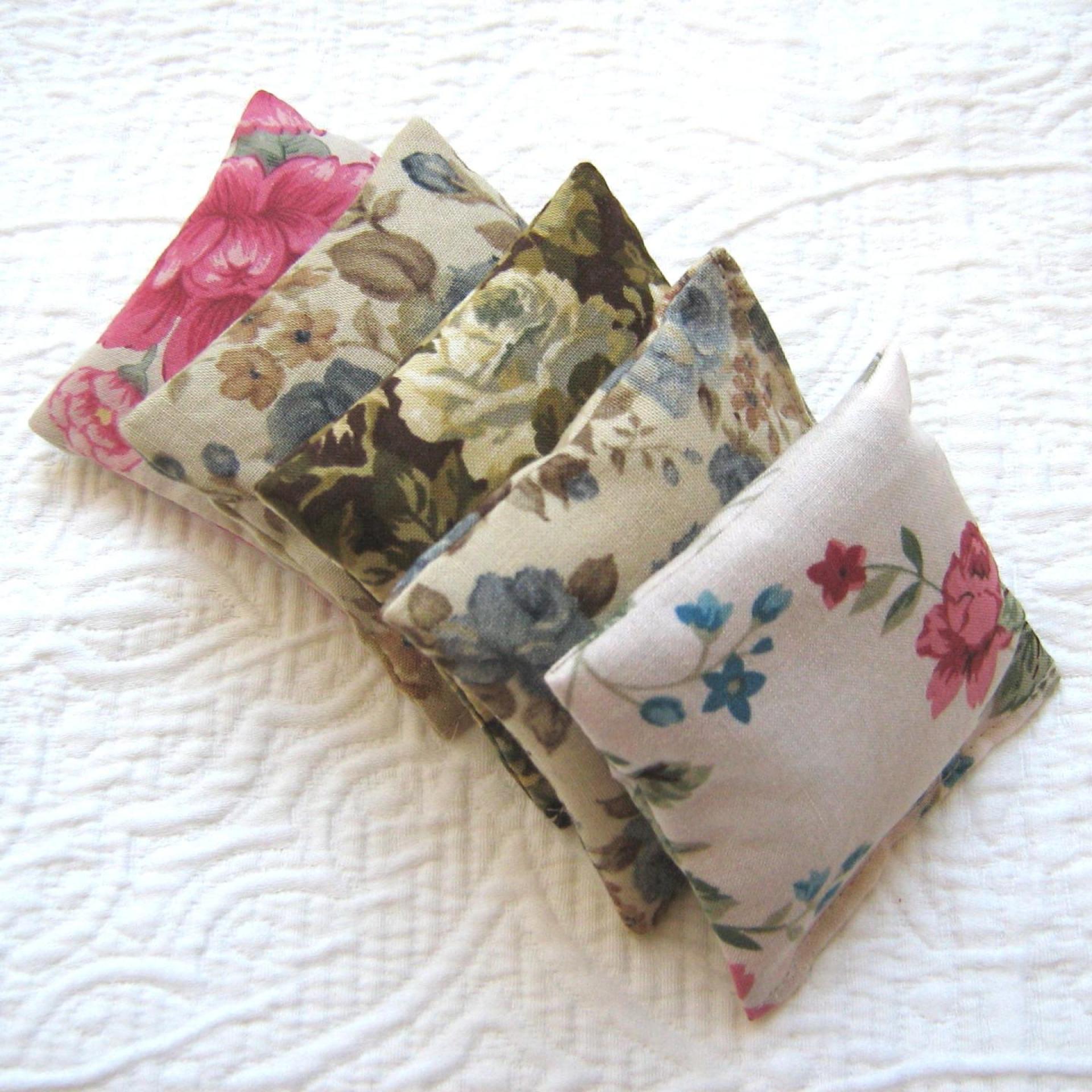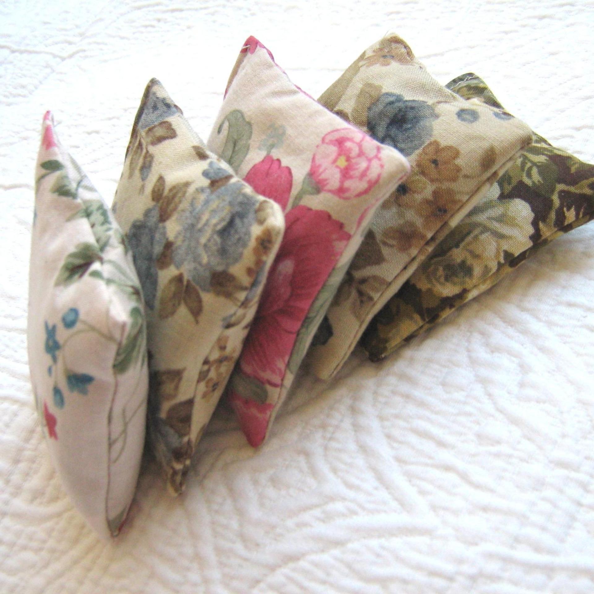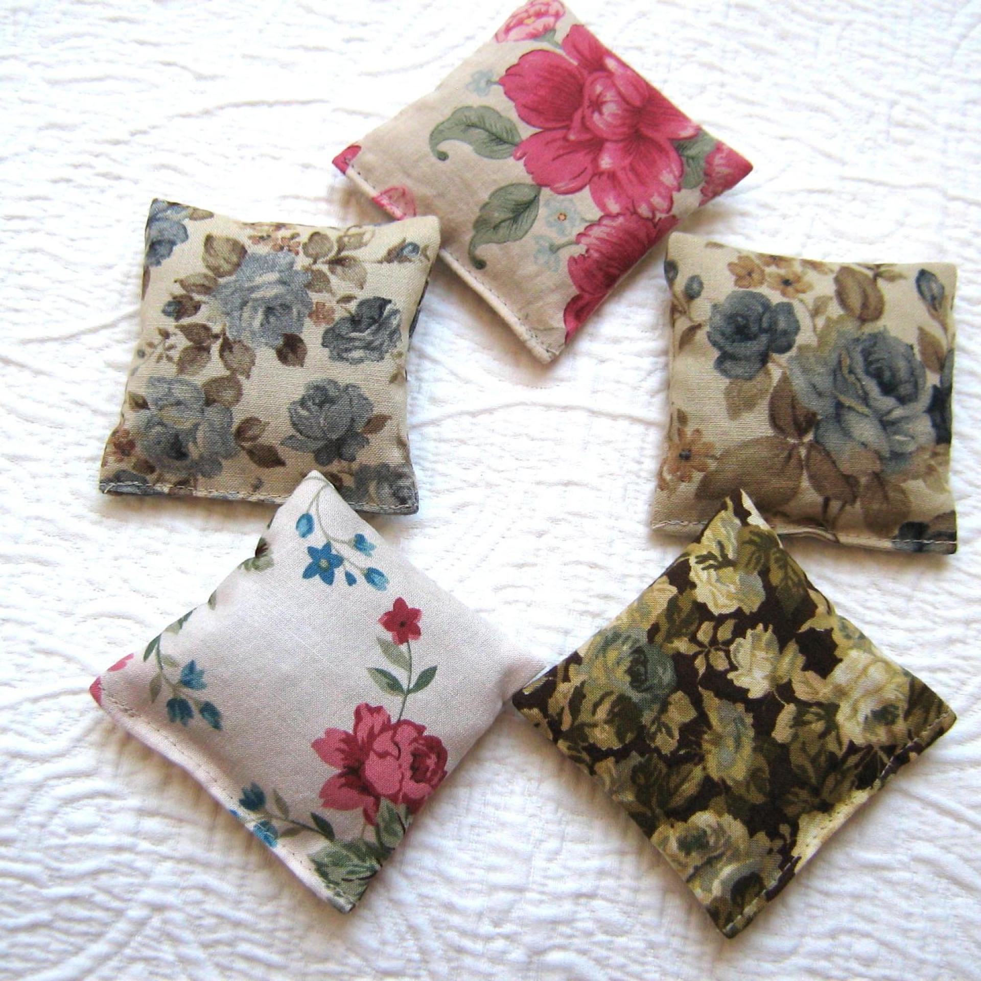 Lovely little lavender-filled sachets, in 5 different cotton prints, the perfect thing for freshening dresser drawers, closet shelves, linen cupboards, luggage, etc.