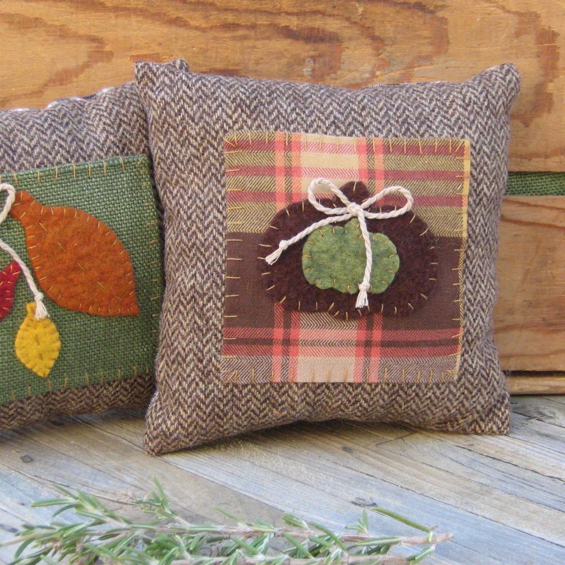 Tweedy mini pillows for fall decorations, on your tabletop, on a mantel or a shelf.