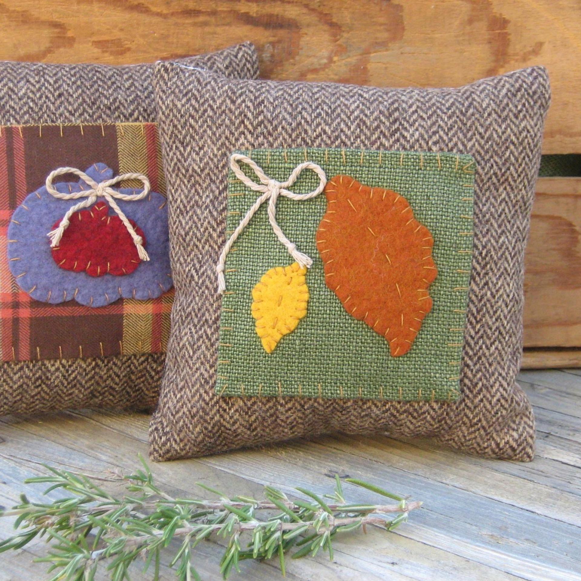 Tweedy mini pillows for fall decorations, on your tabletop, on a mantel or a shelf.
