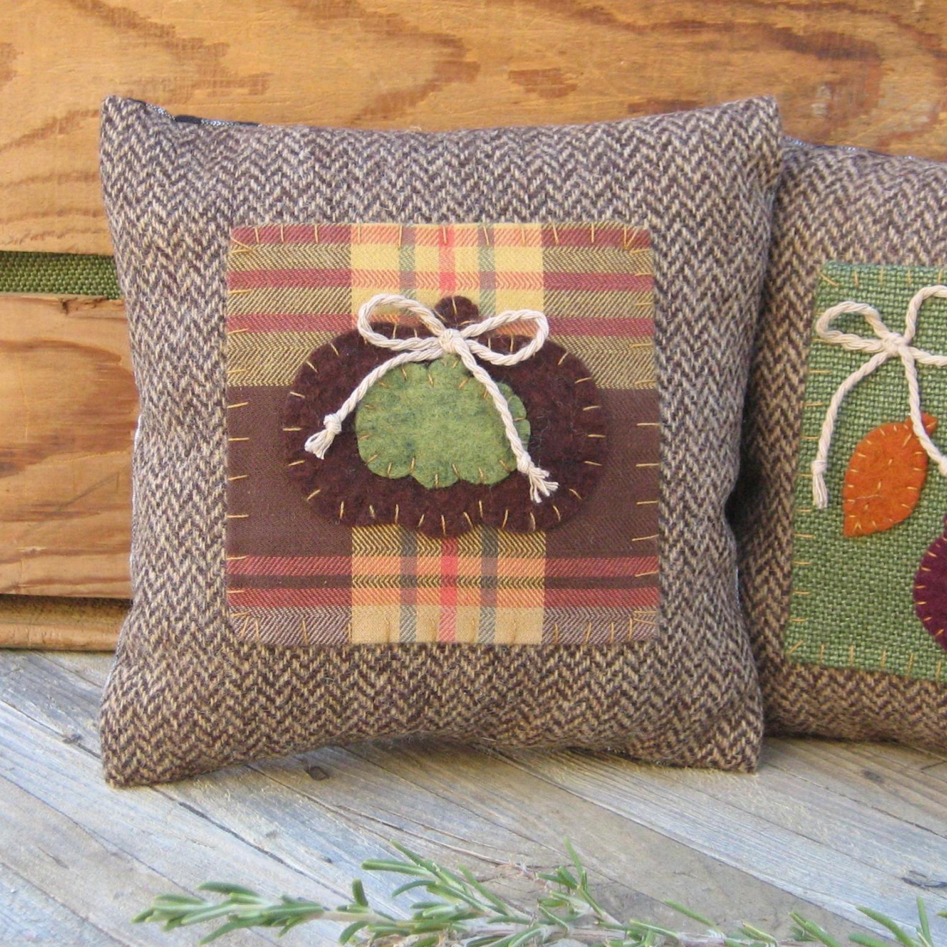 Tweedy mini pillows for fall decorations, on your tabletop, on a mantel or a shelf.
