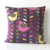 The KAS bird print pillow cover in purple, a great retro-style pop of color for any home.